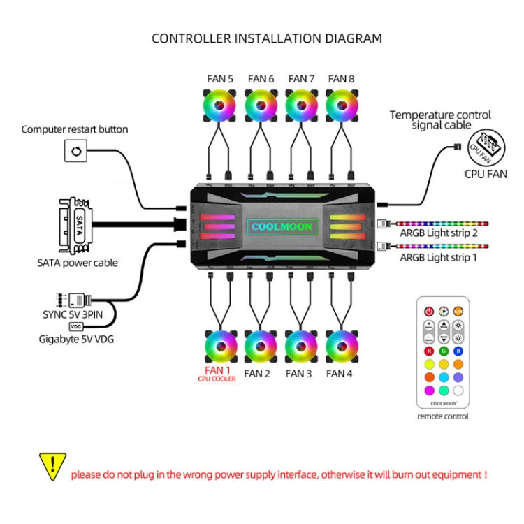 COOLMOON CM-MPAC PWM 5V ARGB Cooling Fan Remote Control For PC Case Chassis, Style: 3 in 1 Controller (Black)