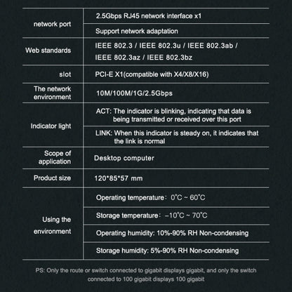 Interface: one 2.5Gbps RJ45 network interface, supporting network adaptation