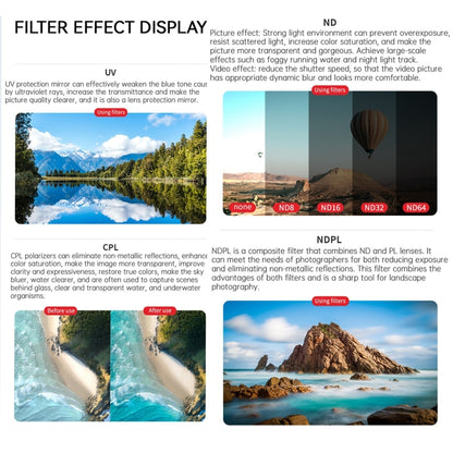 3. ND Filter: You can get more freedom to control aperture and shutter, bring more exposure methods and creative space for photography creation, and effectively prevent overexposure. The number behind ND represents the ability of the ND mirror to block light.