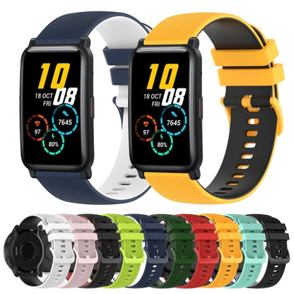 For Honor Watch ES 20mm Checkered Two-Color Silicone Watch Band(Dark Blue+White)
