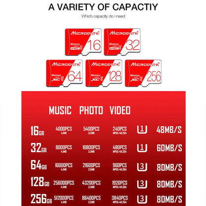MICRODATA 256GB High Speed U3 Red and White TF(Micro SD) Memory Card